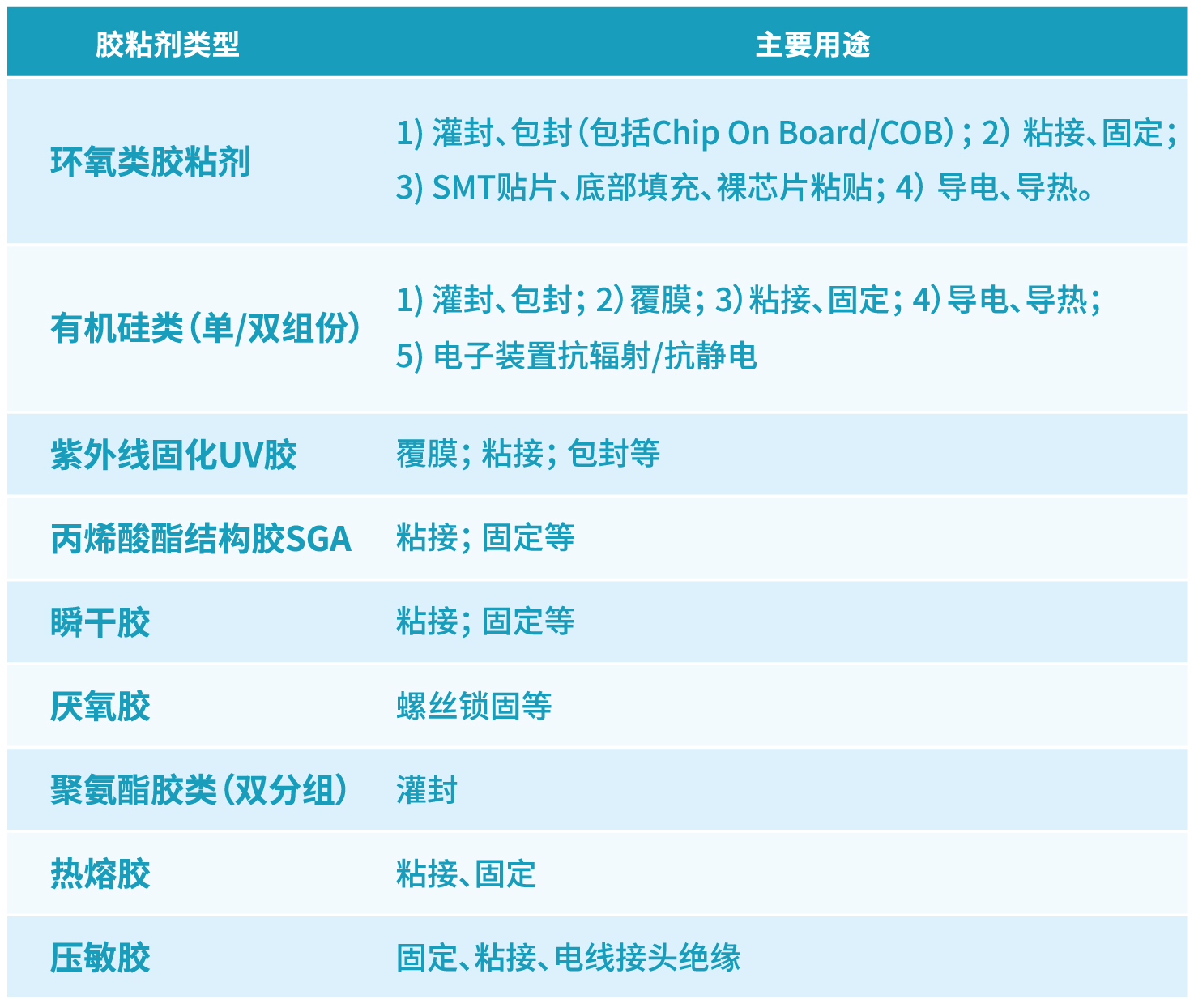一、电子元器件粘合剂种类